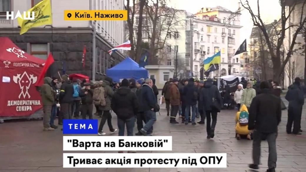 Акция под названием «Дозор на Банковой» под стенами Офиса президента продолжается со вчерашнего дня, организаторами выступают представители движения «Нет капитуляции», партия «Свобода», «Демократична сокира», партия «Национальный корпус» и разные общественные организации