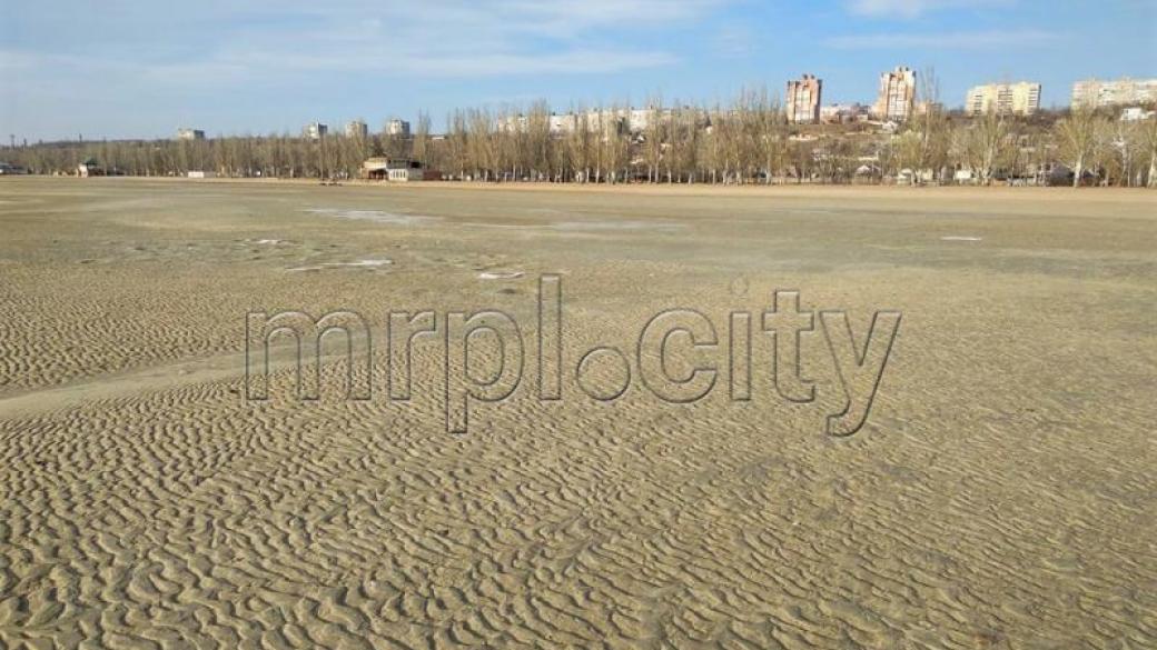 В Левобережном районе горда Мариуполя море отступило от пляжа на десятки метров.