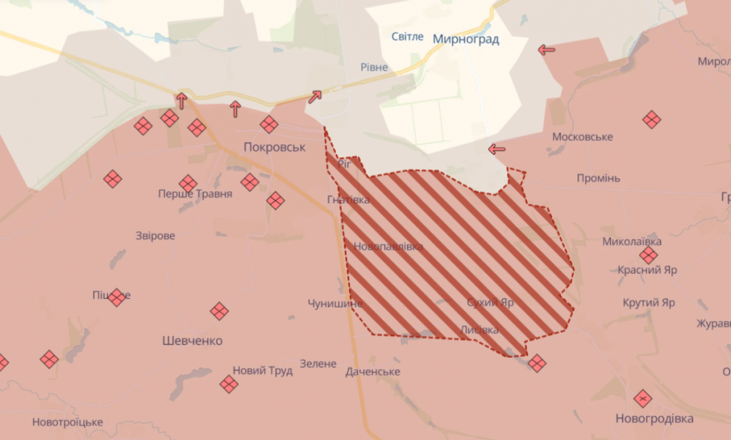 Под Покровском армия рф оккупировала пять сел: Лысовка, Сухой Яр, Гнатовка, Рог и Новопавловка Донецкой области. Об этом сообщили аналитики DeepState.