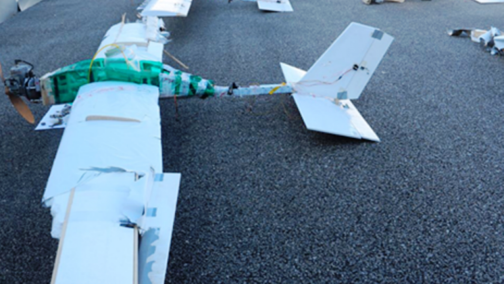 Отмечается, что три показанных военными РФ беспилотника повреждены незначительно, в то время, как еще от трех остались только обломки. БПЛА сделаны из досок и фанеры. Отмечается, что они обмотаны скотчем и зеленым полиэтиленом, поверх которых торчат провода.