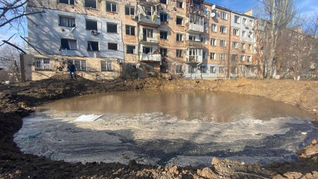 На месте "прилета" образовалась огромная воронка, которая сразу наполнилась водой. Вероятно повреждены сети.