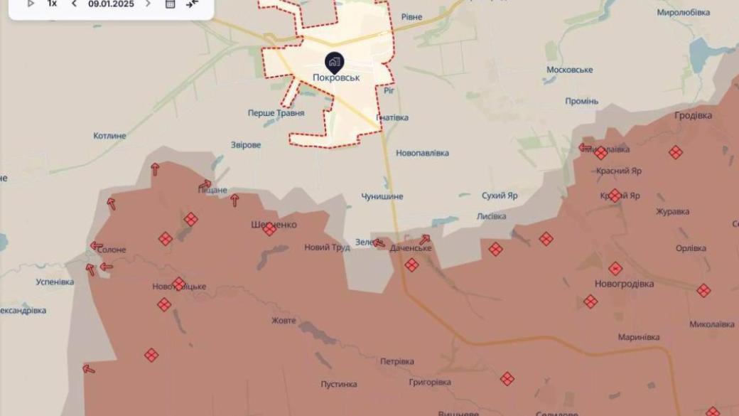 На северном фланге Покровского направления россияне пошли в массированные атаки в сторону трассы Покровск-Константиновка. Об этом сообщил в Telegram украинский военный журналист Богдан Мирошников.