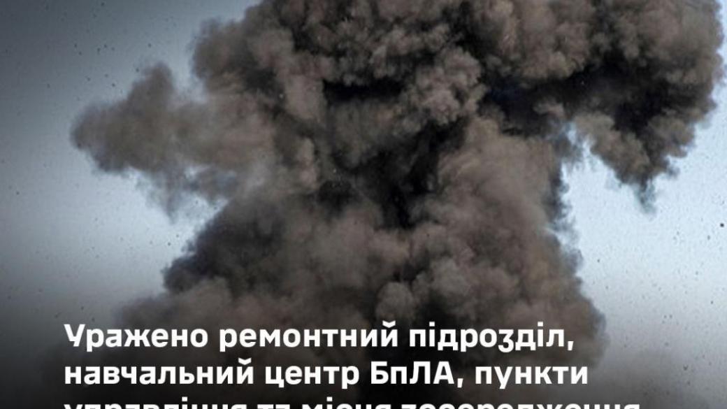 Генштаб ВСУ подтвердил поражение ремонтного подразделения учебного центра БпЛА, пунктов управления и мест сосредоточения российских войск на оккупированных территориях и на территории рф. Об этом сообщили в пресс-службе ведомства, пишет Украинская правда.