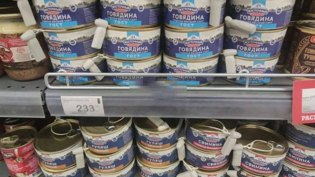 По словам автора, из-за участившихся краж, российские торговые сети начали ставить магнитную защиту даже на сыр, масло и детское питание.