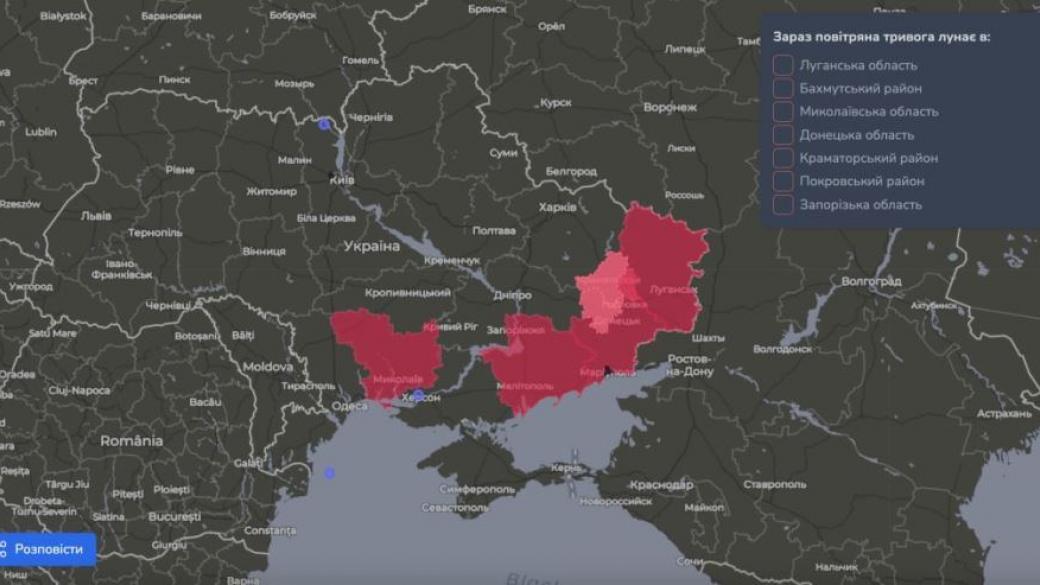 В Николаевской области сейчас объявлена воздушная тревога, как и на юго-востоке Украины.
