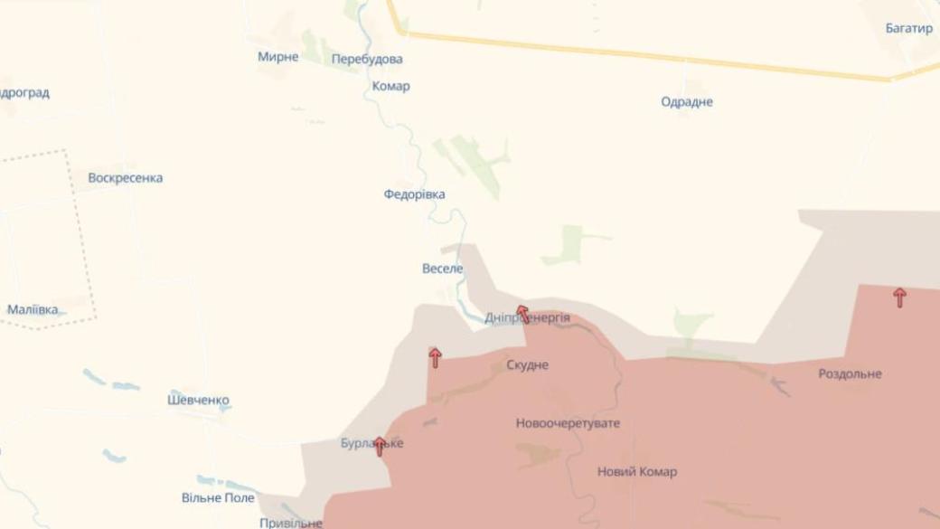 «С Днепроэнергии и Раздольного есть движение на Отрадное. Сейчас Днепроэнергия постепенно превращается в хаб для накопления пехоты и продолжения атак врага. За Бурлацкое, Привольное и Новоселку бои уже за окраинами фактически, оккупанты контролируют большие части всех трех поселков», - отмечает Мирошников.