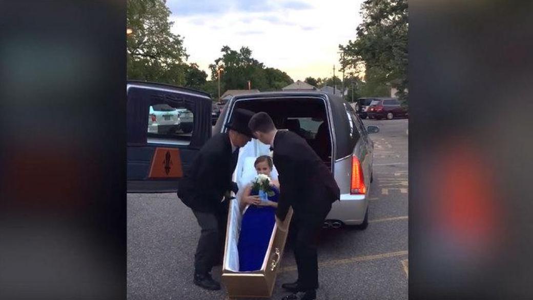 В Соединенных Штатах Америки креативная школьнице решила удивить своих друзей во время выпускного бала, и появилась перед одноклассниками в гробу.