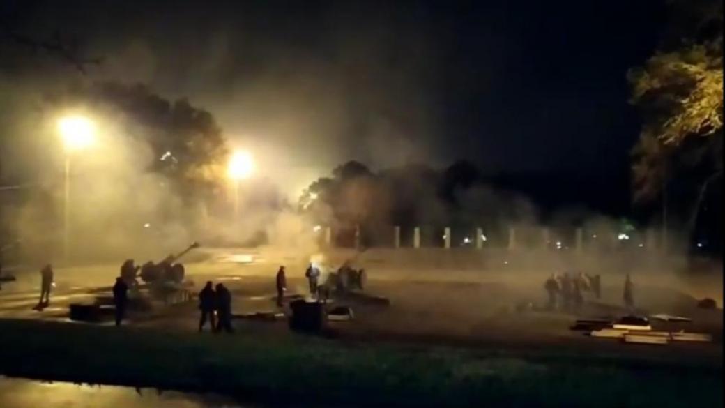 Во временно неподконтрольном украинскому правительству Донецке члены незаконных вооруженных формирований вчера вечером запустили артиллерийский салют из гаубицы.
