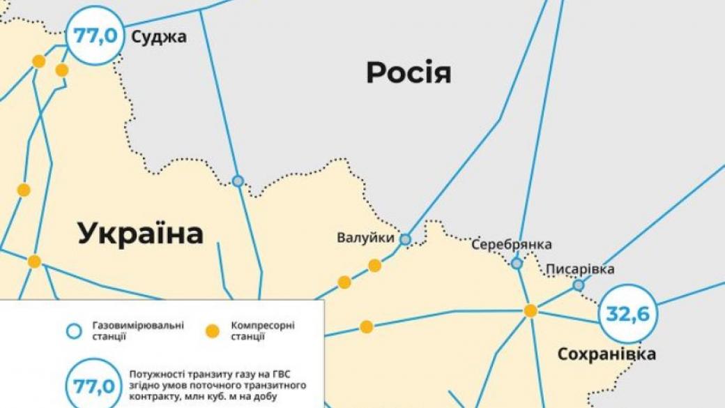 Украина прекращает транзит газа по ОКС «Сохрановка» из-за потери контроля компрессорной станции Новопсков в Луганской области. Через эту станцию проходила почти треть транзита в Европу.