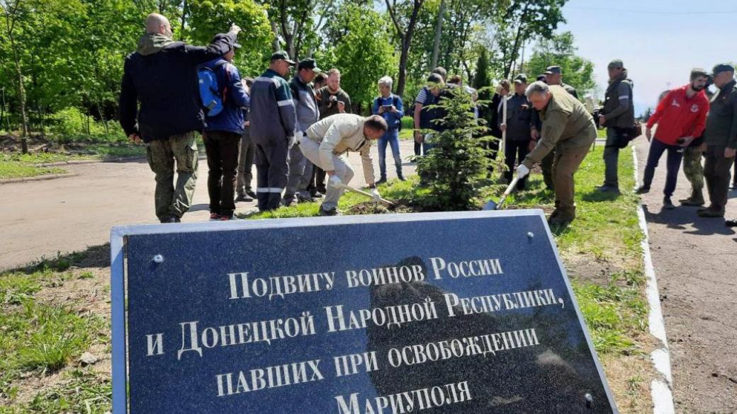 Так называемые «глава ДНР» Денис Пушилин и «мэр» Мариуполя некий Иващенко посадили в городе елку и посвятил ее убийцам мариупольцев — российским оккупантам.