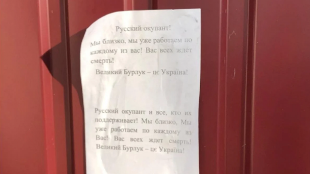 «Русский оккупант! Мы близко и уже работаем по каждому из вас. Вас всех ждет смерть».