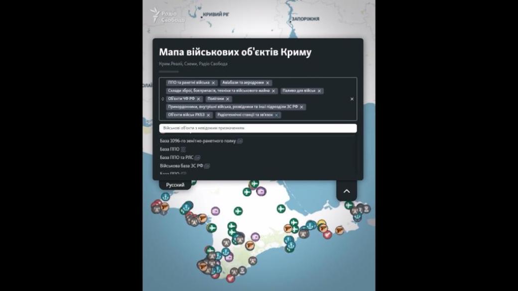 Более двухсот военных объектов временно оккупированного Крыма журналисты «Радио Свобода» нанесли на интерактивную карту.