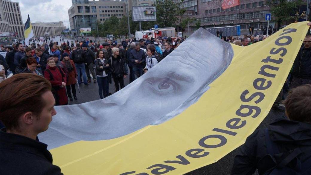 Участники митинга, которых было около 500 человек, протестовали против репрессий, преследований, «царизма». Кто-то пришел с флагом Украины, люди требовали освобождения политзаключенных. Они развернули большой баннер с изображением Олега Сенцова и надписью «Спасите Олега Сенцова».