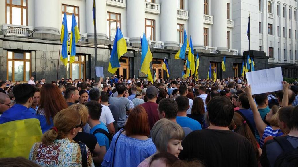 Кроме того, во время акции «Останови капитуляцию» под Администрацией президента произошла потасовка. Активисты хотели прикрепить на стену табличку с надписью «Администрация губернатора Малороссии», однако этому помешала полиция. Правоохранители заявили, что не позволят разместить символику страны-агрессора на здании.