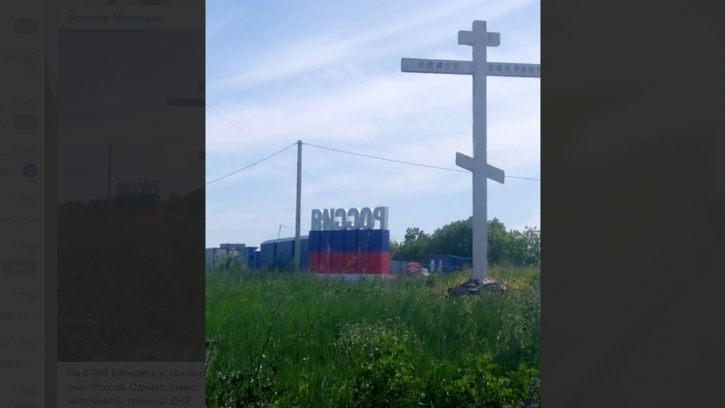 В одном из сообществ в социальных сетях жители ОРДО сообщили, что на подконтрольном членам НВФ «ДНР» КПВВ «Еленовка» установили знак Россия.