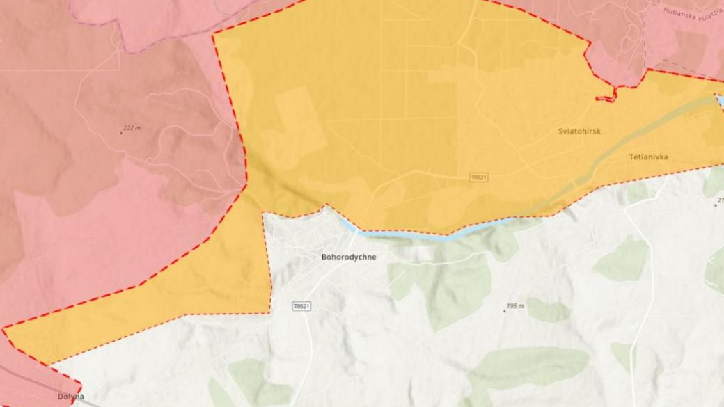 По данным аналитиков, войска РФ наступали на Славянск с юго-востока от Изюма и попытаются использовать свой контроль над районом вокруг Святогорска, чтобы продвинуться в сторону Славянска.