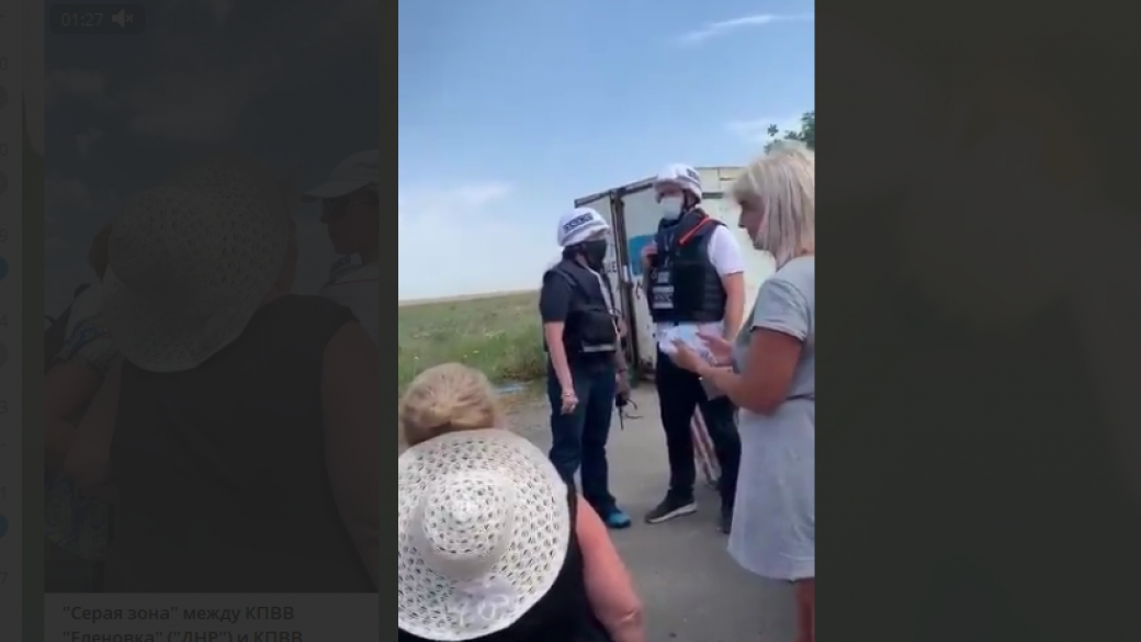 Украинское издание «Диалог» в своем Телеграмм-канале опубликовало видео, на котором старики падают на колени перед членами миссии ОБСЕ в надежде, что те помогут им попасть домой.