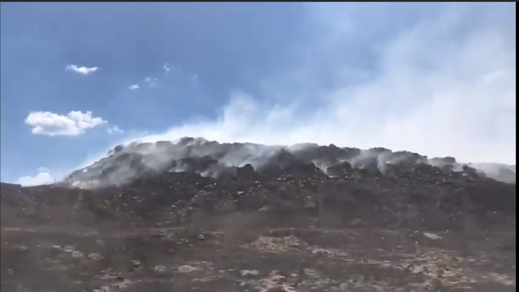 Отмечается, что из-за пожара в лесах 7 июля персонал полигона твердых бытовых отходов эвакуировали, после их возвращения на место работы, они увидели, что на значительной площади полигона горит мусор: