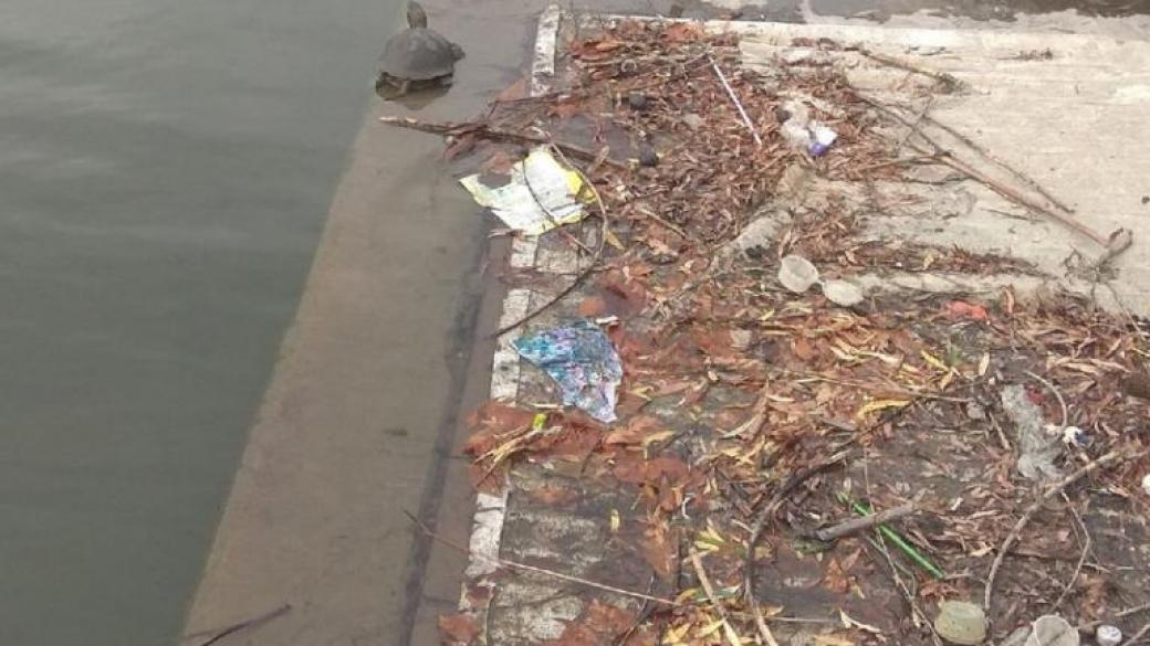 В социальных сетях жители неподконтрольного Украине Донецка публикуют фото одного из водоемов парковой зоны вокруг стадиона «Донбасс Арена» на которых видно огромное количеств мусора, среди которого ползают черепашки.