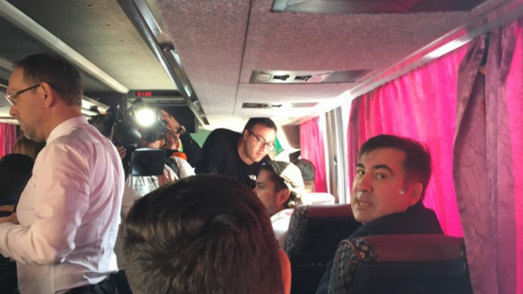 Лидер партии «Рух новых сил», экс-глава Одесской ОГА Михеил Саакашвили едет из польского Жешува в сторону пункта пропуска «Краковец» вместе со своим сыном, вице-президентом Европарламента, евродепутатом Яцеком Сариуш-Вольским, а также группой украинских политиков и народных депутатов