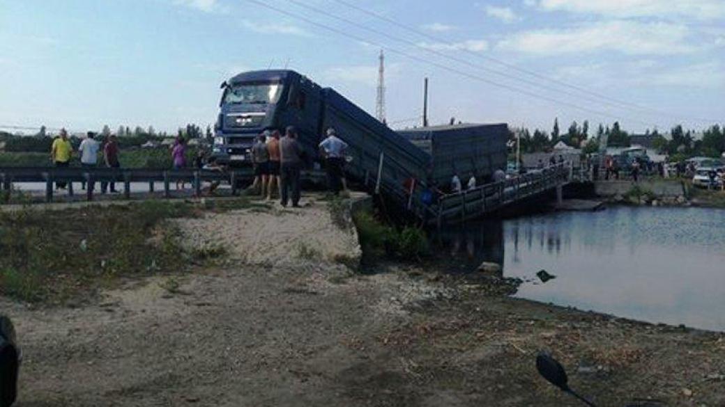 Грузовик MAN потопил понтонный мост через реку Ингул на дороге между селами Пересадовка и Михайло-Ларино Витовского района в Николаевской области .