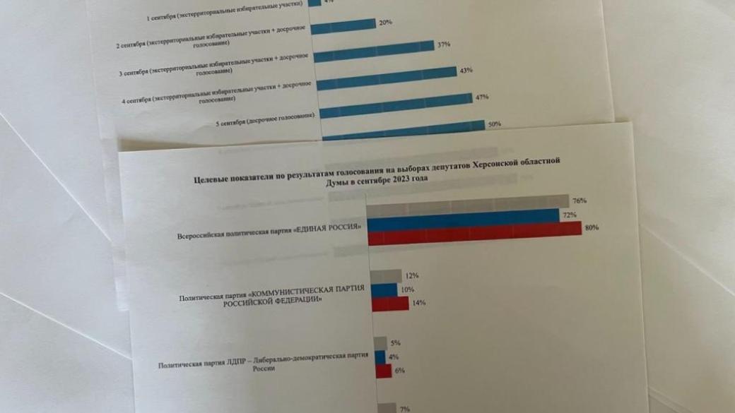 В одной из коллаборантских избирательных комиссий в Херсонской области "завалялся" документ, в котором расписаны показатели явки и результатов голосования.