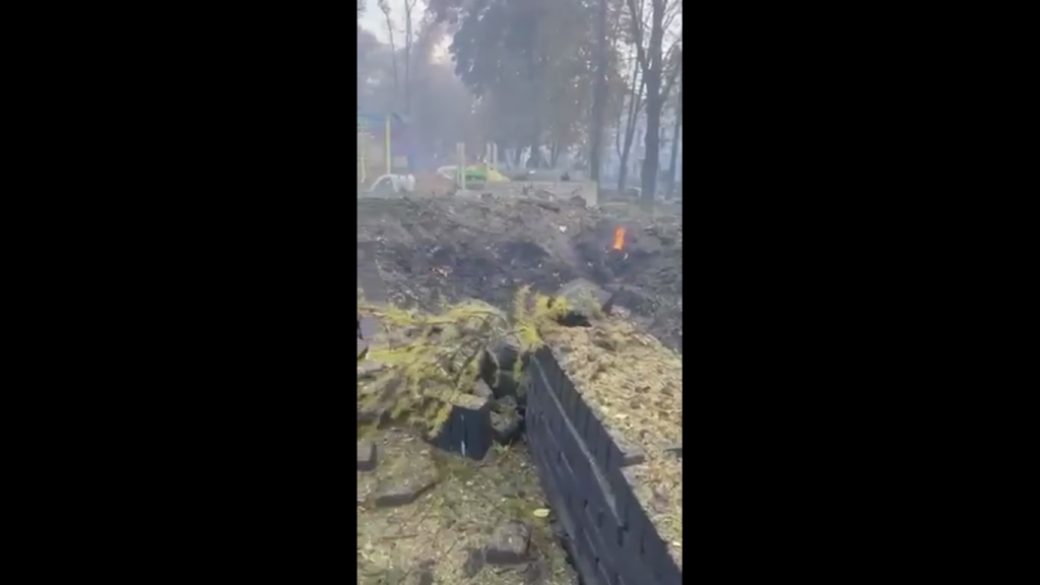 Во время утренних ударов по Киеву ракета упала на детскую площадку.
