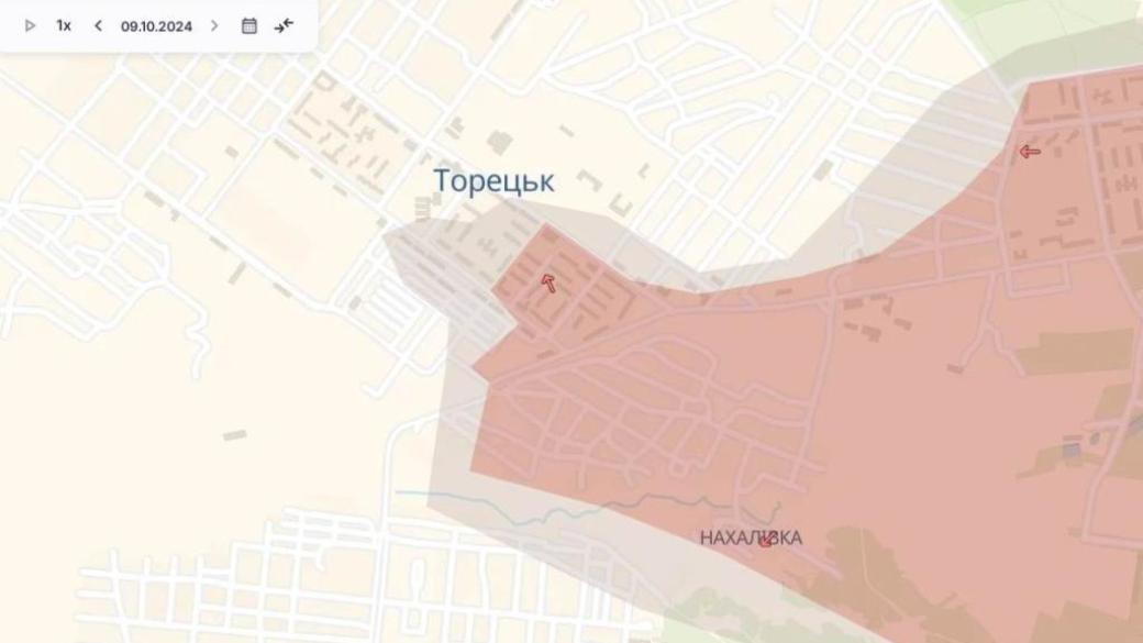 За прошедшие сутки, 9 октября, россияне продвинулись в городе Торецк Донецкой области еще на 200 метров. Об этом сообщил в Telegram украинский военный журналист Богдан Мирошников.
