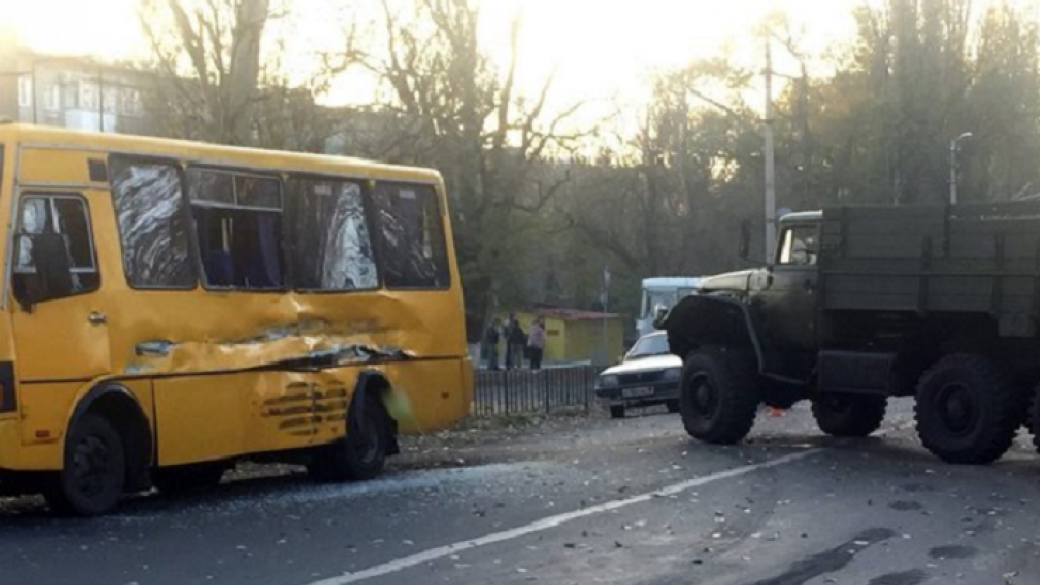 Авария произошла на трассе Донецк — Старобельск. В районе поста ГАИ грузовик местной «народной милиции» врезался в пассажирский автобус.
