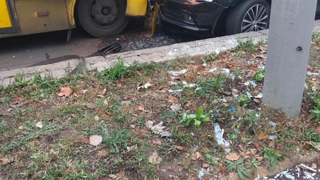 На ул. Университетской столкнулись два транспортных средства. По фото видны повреждения у легкового авто и маршрутного автобуса.