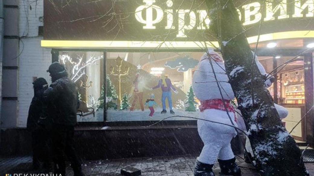 При этом участники протестов все это время скандировали «Порошенко на нары» и бросали в магазин снежки.