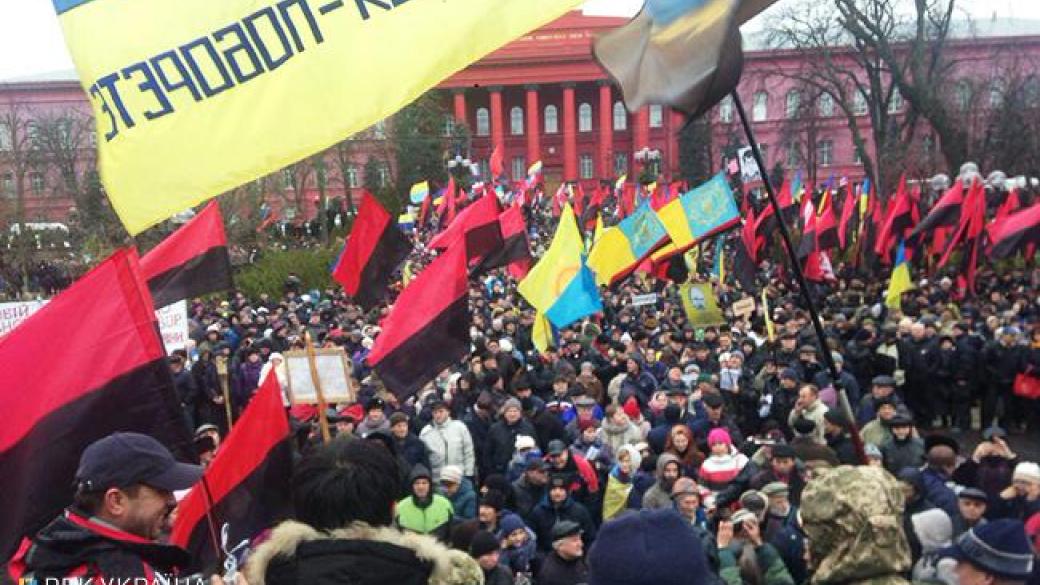 В Киеве около 3 тысяч митингующих собрались напротив главного корпуса Национального университета имени Тараса Шевченко чтобы пройтись маршем за импичмент.