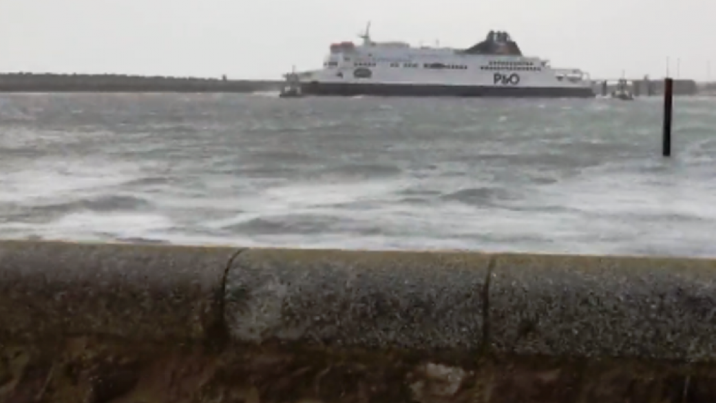 Из-за сильного ветра во французском порту Кале на мель сел паром Pride Of Kent, направлявшийся в английский Дувр.