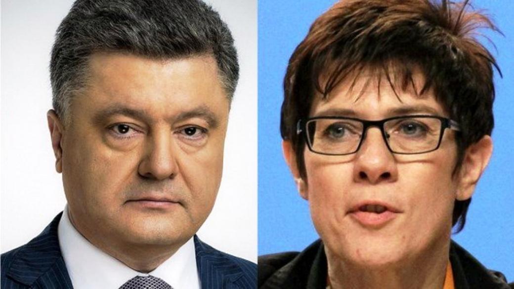 В ходе телефонного разговора Порошенко поздравил Крамп-Карренбауэр с избранием на новую должность и отметил динамичное развитие политического диалога между Украиной и Германией. Кроме того, он указал на активную роль Германии в поиске действенных путей для прекращения российской агрессии на Донбассе и в Азовском море.