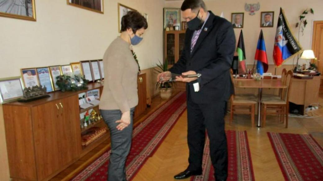 Так называемый «мэр» неподконтрольного Украине Дебальцево Игорь Захаревич в своем Телеграмм-канале похвастался «помощью» местному детскому саду, которому он вручил … кухонный венчик.