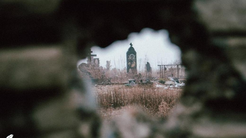 По словам автора фото в данном районе полная разруха и отчуждение. Разбитые памятники, части неразорвавшихся мин, продырявленный во время обстрела монастырь, заросшее травой кладбище и увядшие цветы.