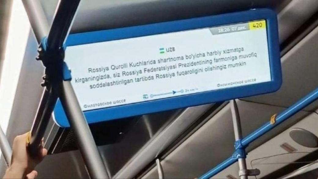 В общественном транспорте Москвы появились объявления на узбекском языке, призывающие на службу в ВС РФ
