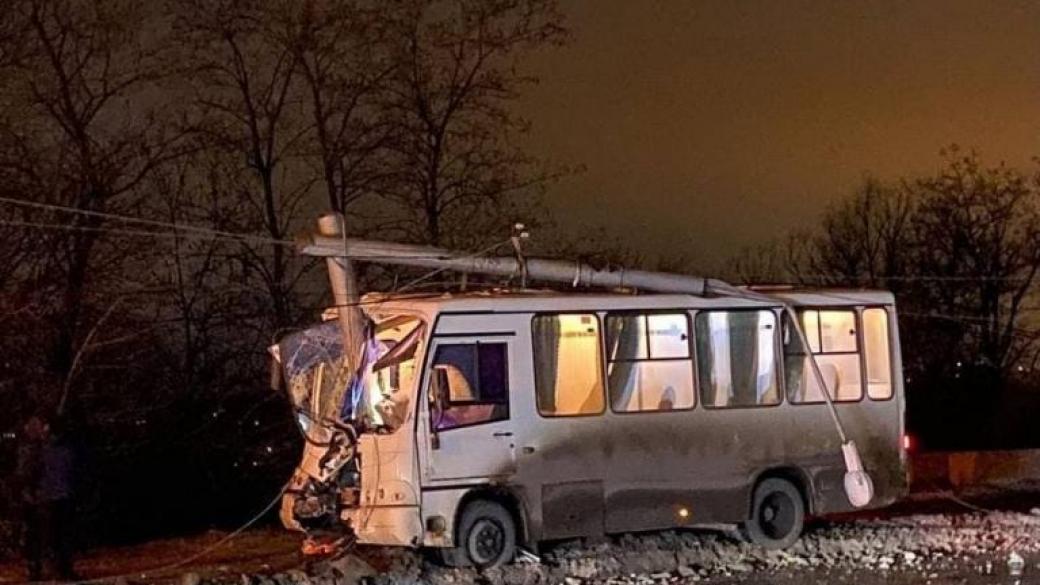 В неподконтрольной Украине Макеевке маршрутка влетела в столб, в следствии чего транспортное средство получило серьезные повреждения. Об этом сообщают местные жители в социальной сети.