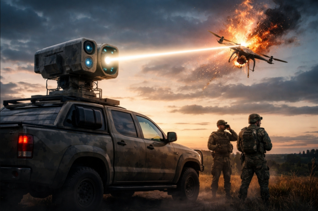 В публикации рассказывается, что оператор установил лазерную пушку на крыше своего пикапа посреди пустого поля. На вид она напоминала любительский телескоп с несколькими камерами, прикрепленными по бокам. Во время демонстрации небольшой дрон, зависший на несколько сотен метров, мгновенно загорелся от лазерного луча и упал на землю, описав огненную дугу.