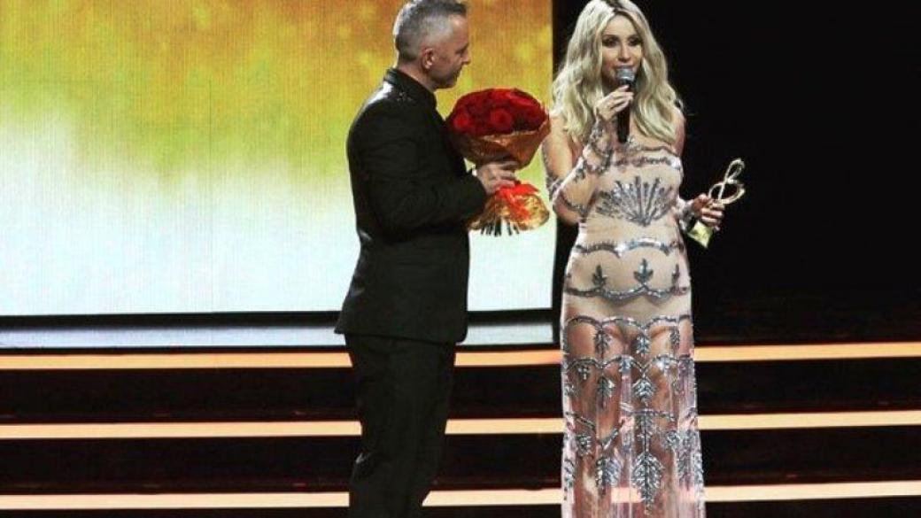 На сцене Международной профессиональной музыкальной премии BraVo в Москве, где LOBODA получила премию «Певица года» из рук итальянского исполнителя Эроса Рамазотти, она официально подтвердила свою беременность.