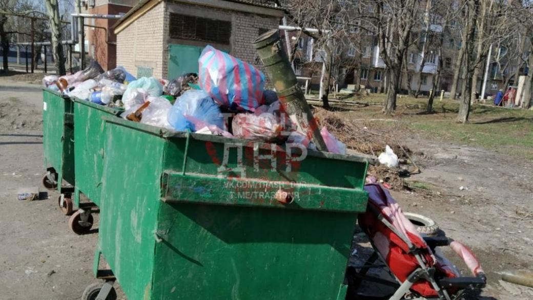 «В поселке Октябрьском на западе Донецка и без того часто стреляют, так и о безопасности людей никто не думает. В мусорном контейнере случайно нашли выстрельный ствол ручного пехотного огнемета. Прямо возле жилых домов».