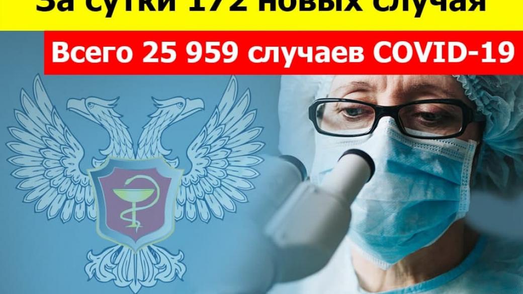 За последние сутки в ОРДО выявлено 172 случая заболевания COVID-19. Об этом сообщают в «минздраве ДНР».