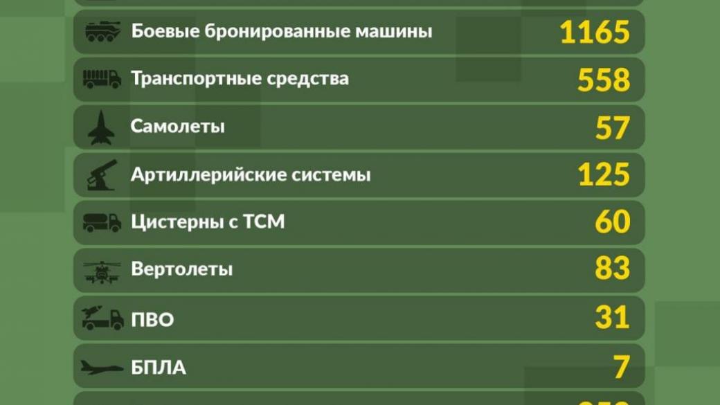 При этом в Генштабе уточнили, что подсчет усложняется высокой интенсивностью боевых действий. Также были озвучены потери противника в сутки: