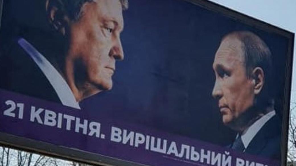 На билбордах, агитирующих украинцев голосовать 21 апреля за Петра Порошенко исчез Владимир Путин.