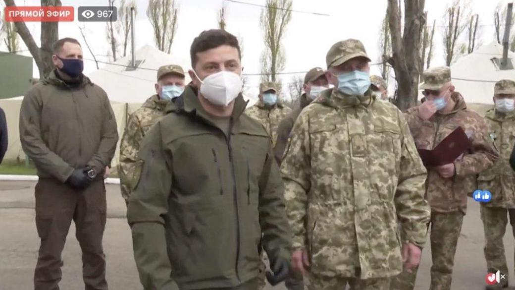 «Ознакомление президента Украины Владимира Зеленского с функционированием палаточного городка для инфекционных больных COVID-19 66-го Военно-мобильного госпиталя.»
