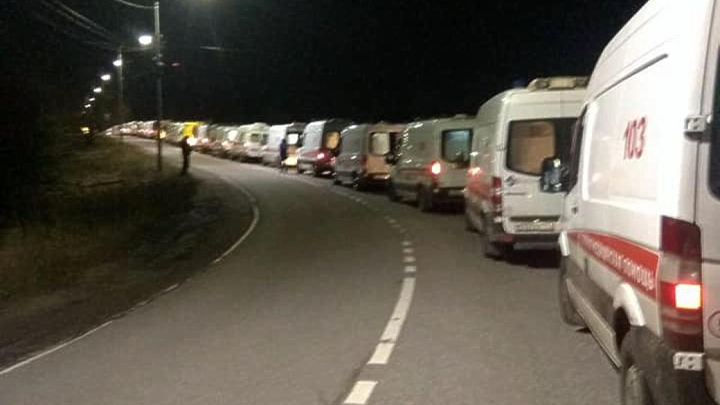 «Сегодня работаю на скорой в ночную смену. Из Митино привезли пациента в больницу, в Новогорск, видимо в Москве некуда. Я еще такого не видел за 6 лет! Стоим в очереди.»