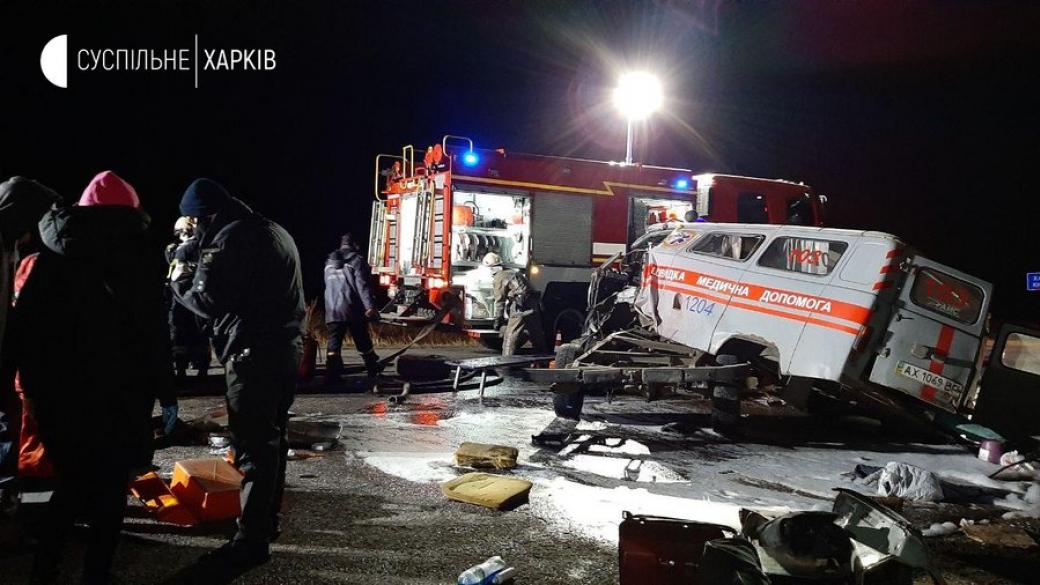 Заместитель директора Центра экстренной медицинской помощи и медицины катастроф Юрий Подзолков уточнил, что бригада скорой, четверо мужчин, везла пациентку из поселка Хорошево в Харьков.