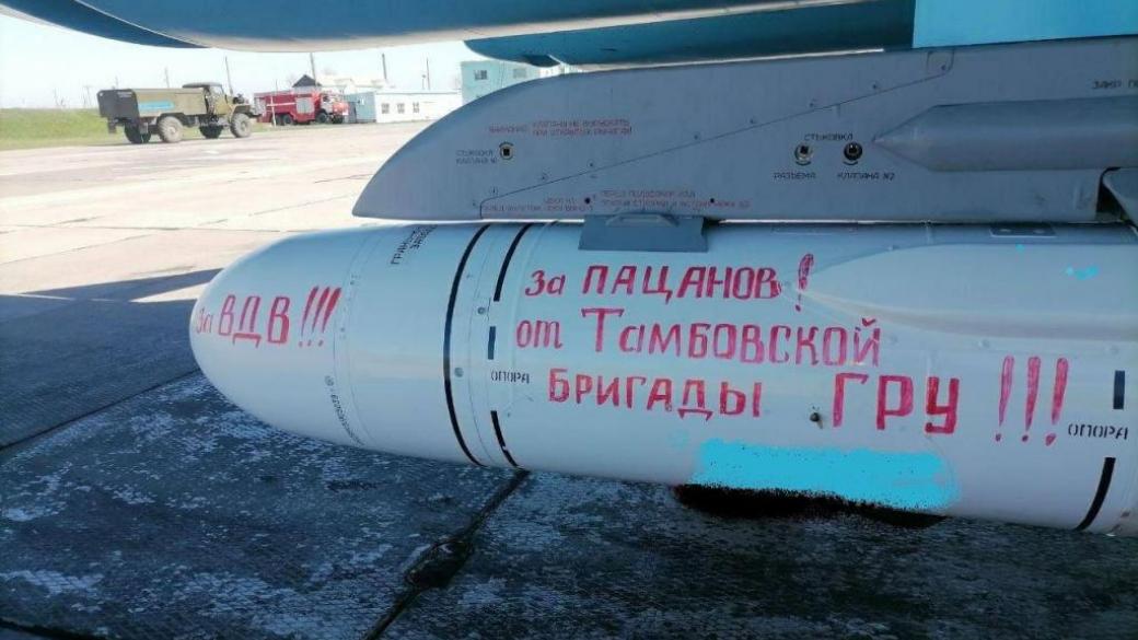 «Надписи на российских авиационных ракетах Х-35У. Ну, а что еще может сделать российский спецназ, после бегства из Киевской области. Кстати, своих пацанов они таки бросили», — сообщили на канале.