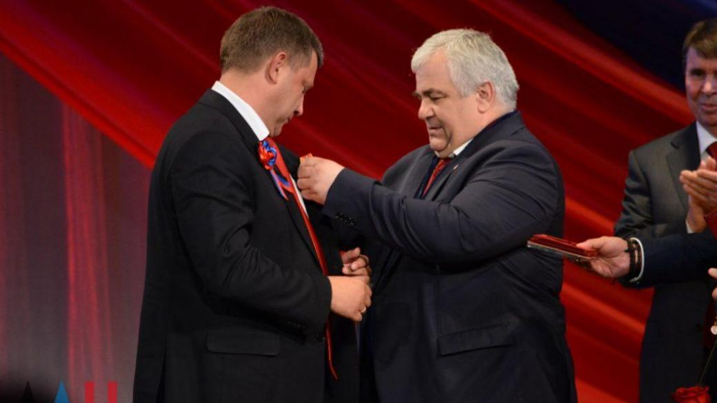 Депутат Госдумы РФ от КПУ Казбек Тайсаев в «день республики» вручил главарю боевиков «ДНР» Александру Захарченко «медаль 100-летия Великой Октябрьской революции».