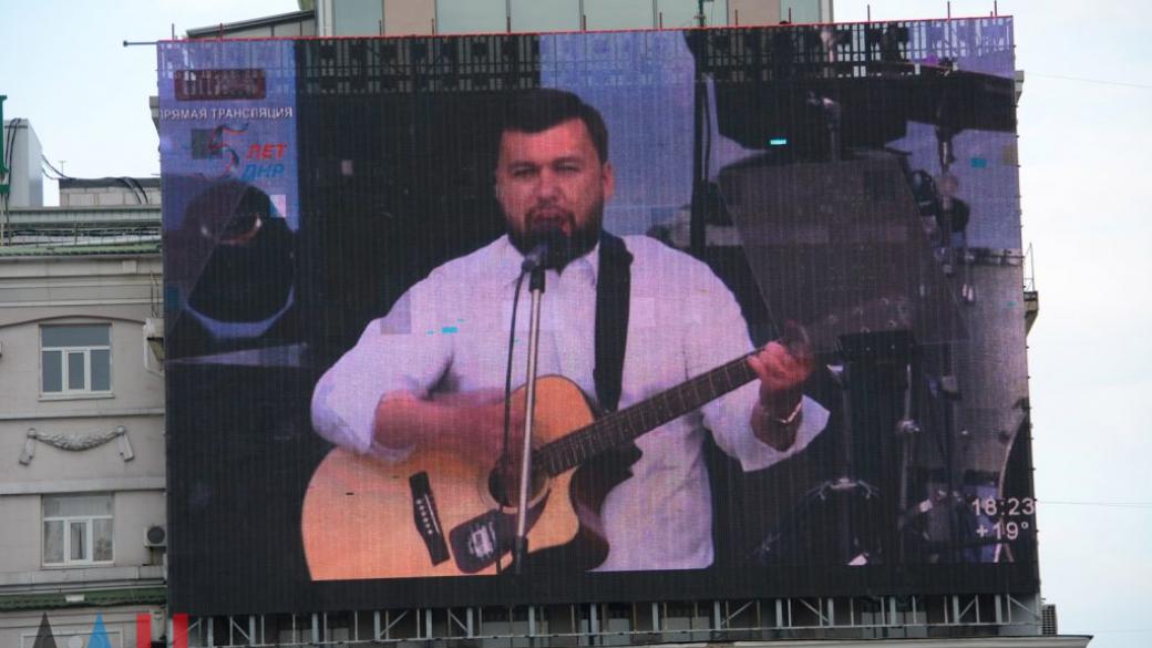Главарь «ДНР» Денис Пушилин сегодня на площади Ленина в неподконтрольном Украине Донецке на концерте по случаю «дня республики» исполнил песню «Россия — Родина-мать». Об этом сообщают подконтрольные ОРДО СМИ.